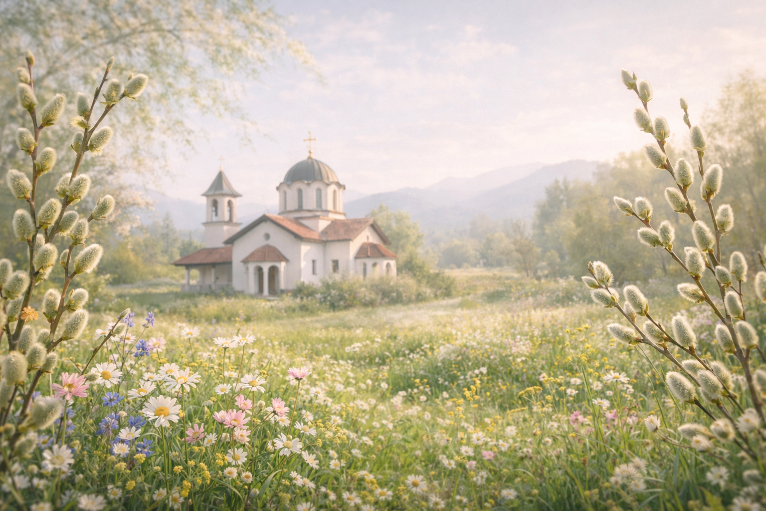 Вярващите посещават църква, където се освещават върбови клонки. Те символизират здраве, дълголетие и защита от зли сили.