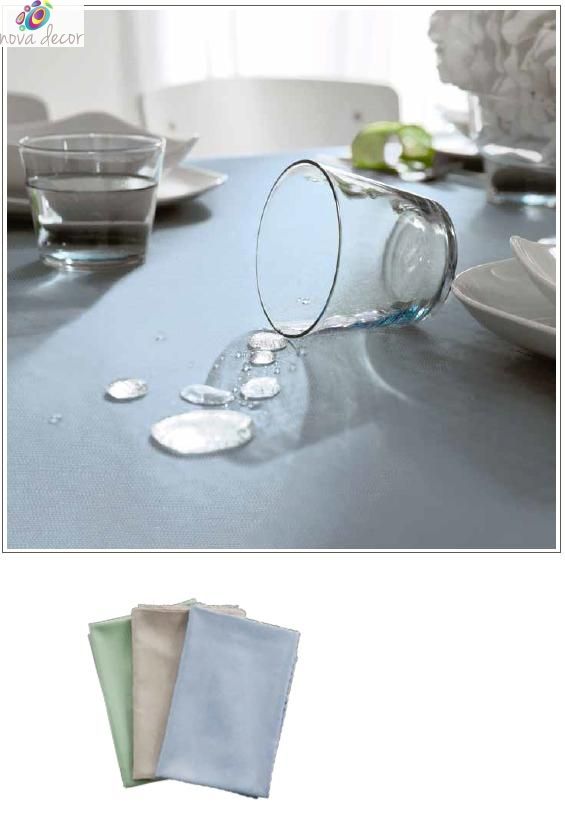Waterproof tablecloth made of high quality technology. The fabric does not allow spilled liquids to soak into the table. Whatever is spilled remains on the tablecloth surface as droplets.