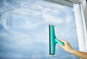 - After the cleaning the integrated squeegee lip causes streak-free gleam. For flexibility and maximum operation comfort the hand window cleaner has a rotating joint. It is excellent suitable for the efficient cleaning and squeegee in wavy lines – the technique of the professionals. Wiping width is 32 cm. The handle enables the use of the Leifheit Click-System handle with telescopic function.