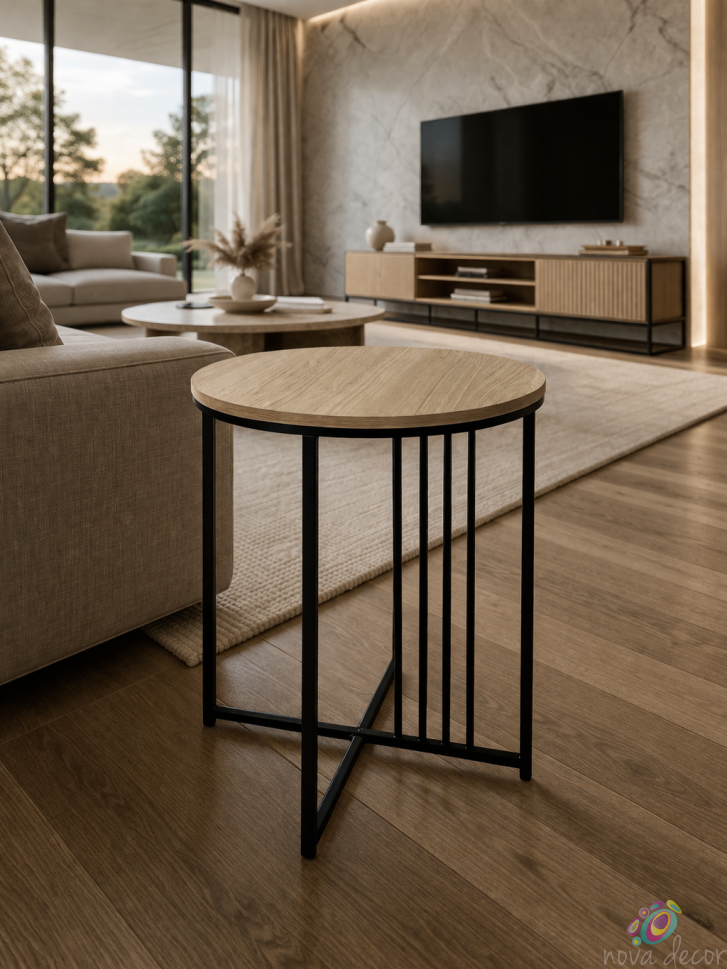 Помощна маса Casa Pienza с елегантен и съвременен дизайн, съчетаващ практичност и стил. Изработена от MDF с меламиново покритие и стабилна метална конструкция, тя осигурява надеждност и дълготрайност. С размери 40.5 × 51.5 см, е идеално допълнение към дневна или спалня, придавайки завършен и модерен облик на интериора.