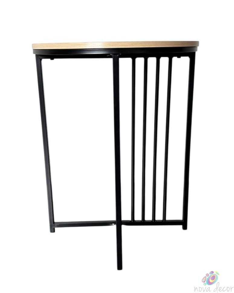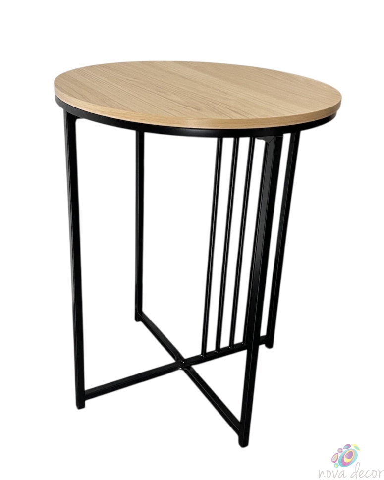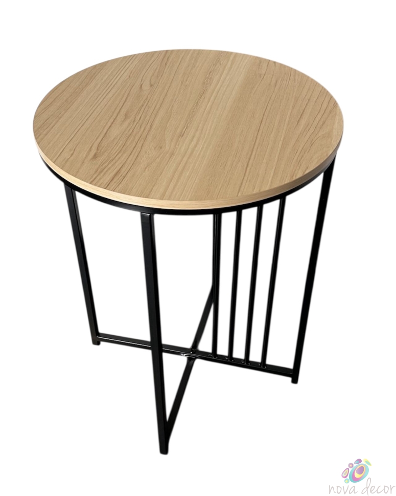 Внесете модерен щрих и функционалност в дома си с тази стилна помощна маса. Комбинацията от плот с дървесен декор и минималистична метална основа я прави перфектен избор за интериори в индустриален, лофт или скандинавски стил.