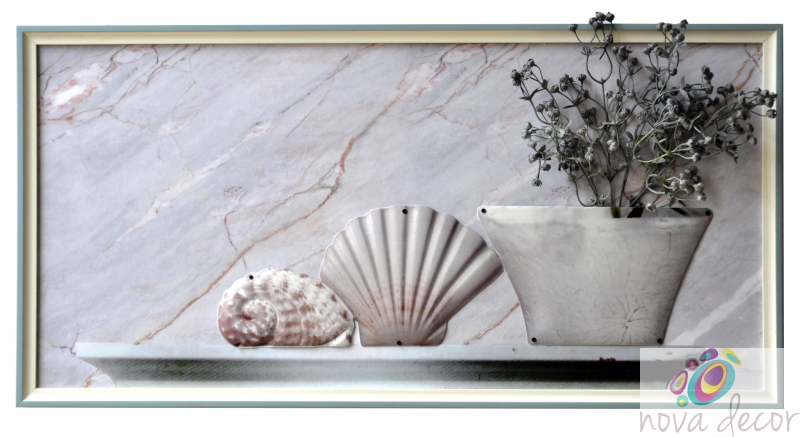 3D метална декорация с ръпан, мида и саксия с цвете – уникален стенен акцент за всеки интериор. Идеален подарък за любителите на морски и природни мотиви.